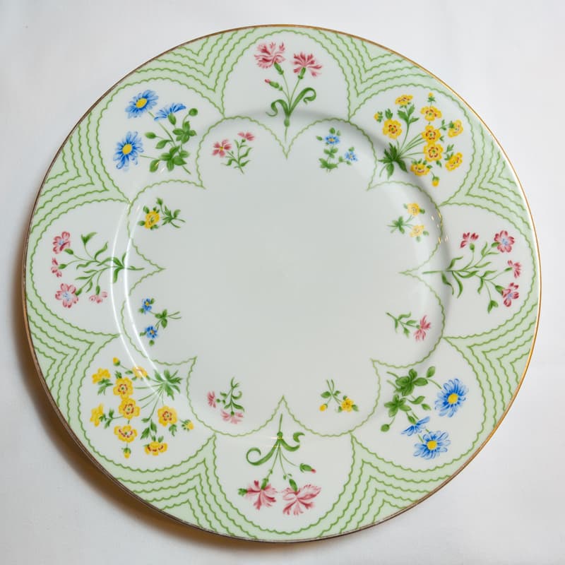 Assiettes et couverts LIMOGES(リモージュ)RAYNAUD(レイノー)のクラシックなコレクション 料理に使用するお皿は、 LIMOGES(リモージュ) RAYNAUD(レイノー)のクラシックなコレクションから、そして、シルバーは、 MATFER (マトファー)のナイフ、フォークをご使用いたします。